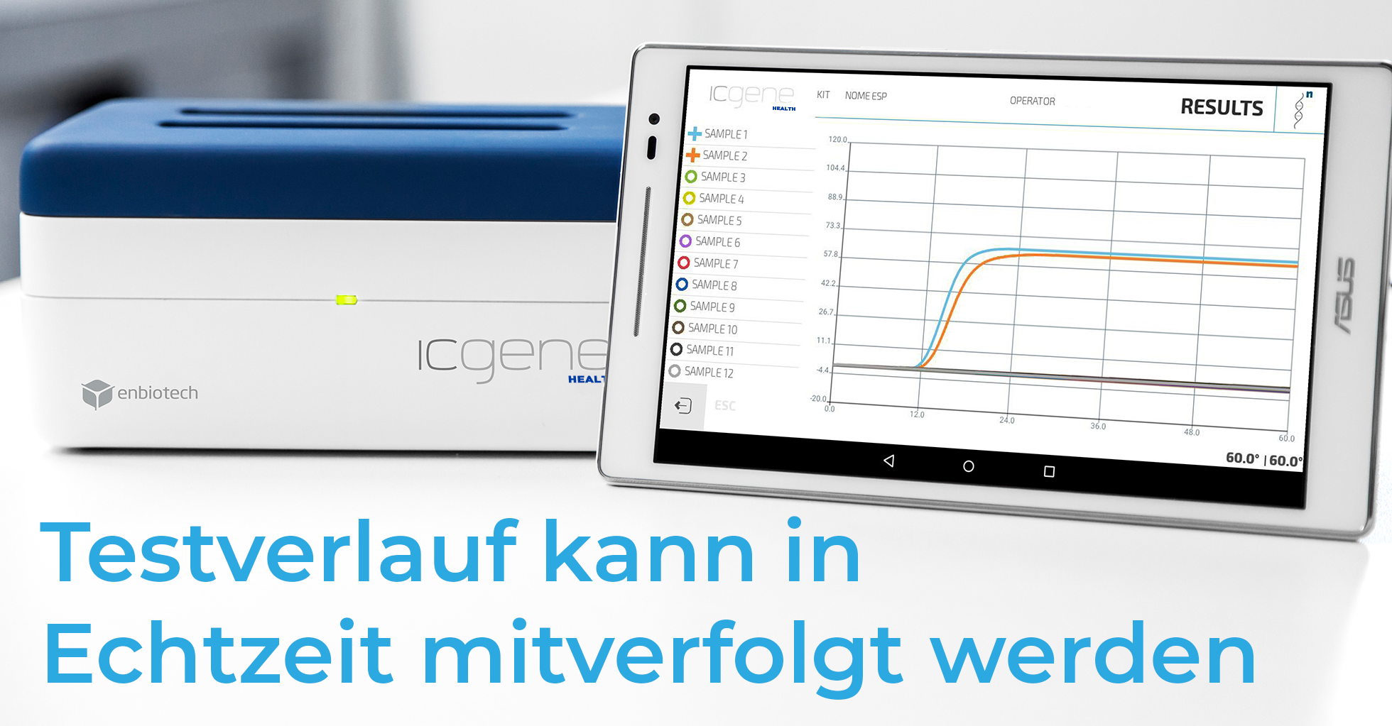 Bis zu 48 Proben werden einfach mit Hilfe des Echtzeit-Fluoreszenzverstärkers und –lesers analysiert, welcher durch eine benutzer- freundliche Android-Oberfläche bedient wird.